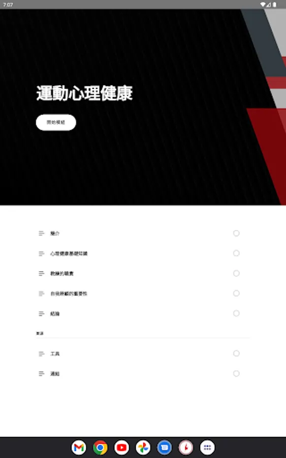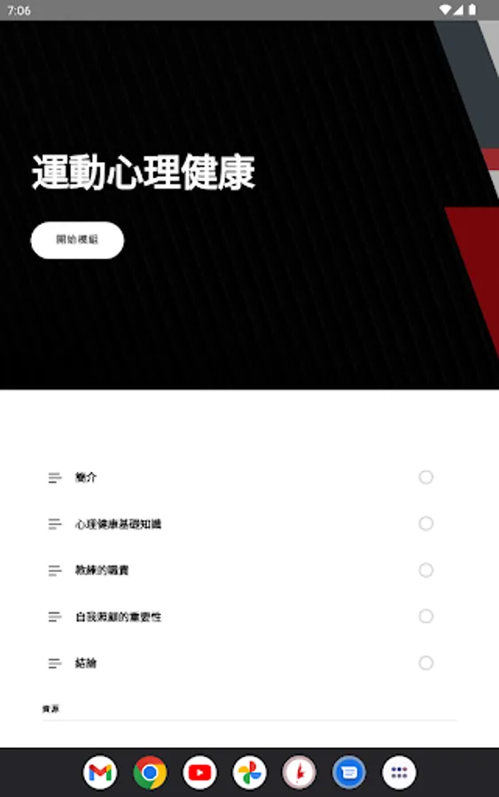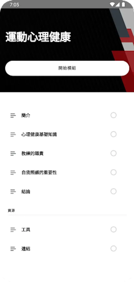 This app provides the following online course modules:
