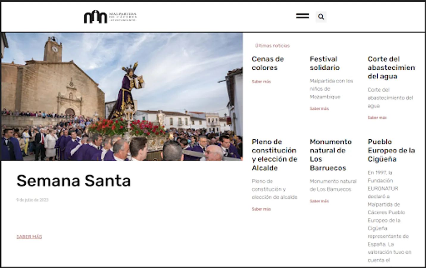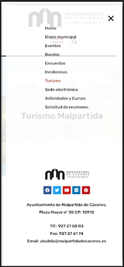 Web application of the City Council of Malpartida de Cáceres