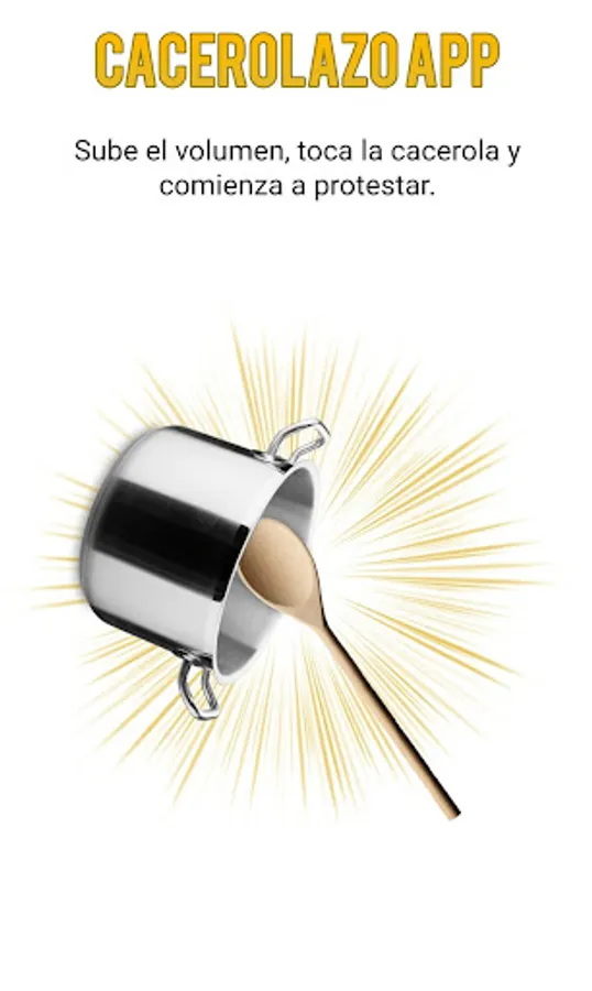 App that allows you to join the cacerolazos without destroying the pots and thus prevent your mom from challenging you. Turn up the volume, touch the pan and start protesting without destroying your pots.