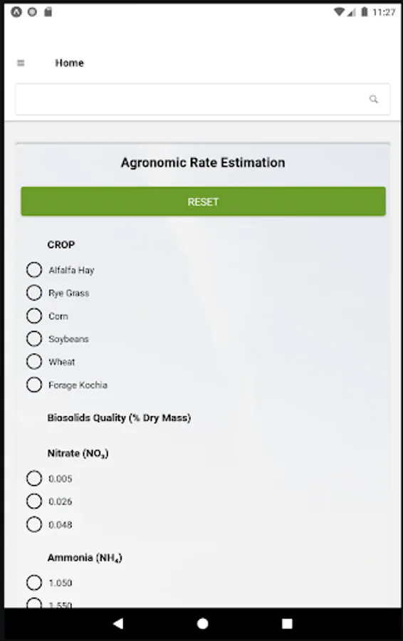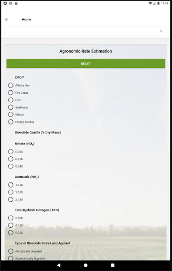This application allows users to calculate Agronomic Rate using different crops and biosolids types.