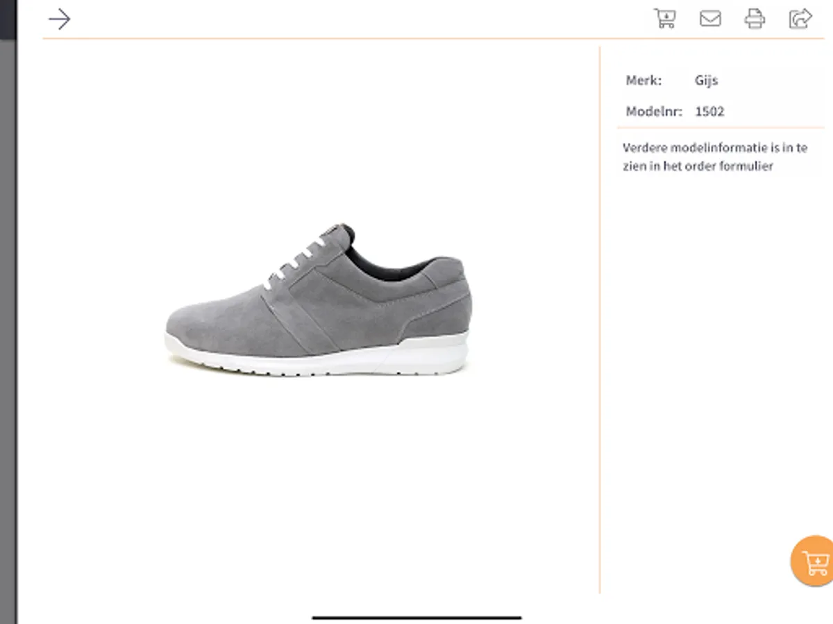 You enter the foot sizes, select lasts from the reading proposal, choose a shoe model with your customer and order the shoes directly from the supplier or send the order to your own purchase channel. When the supplier accepts your order you will receive a confirmation by email.