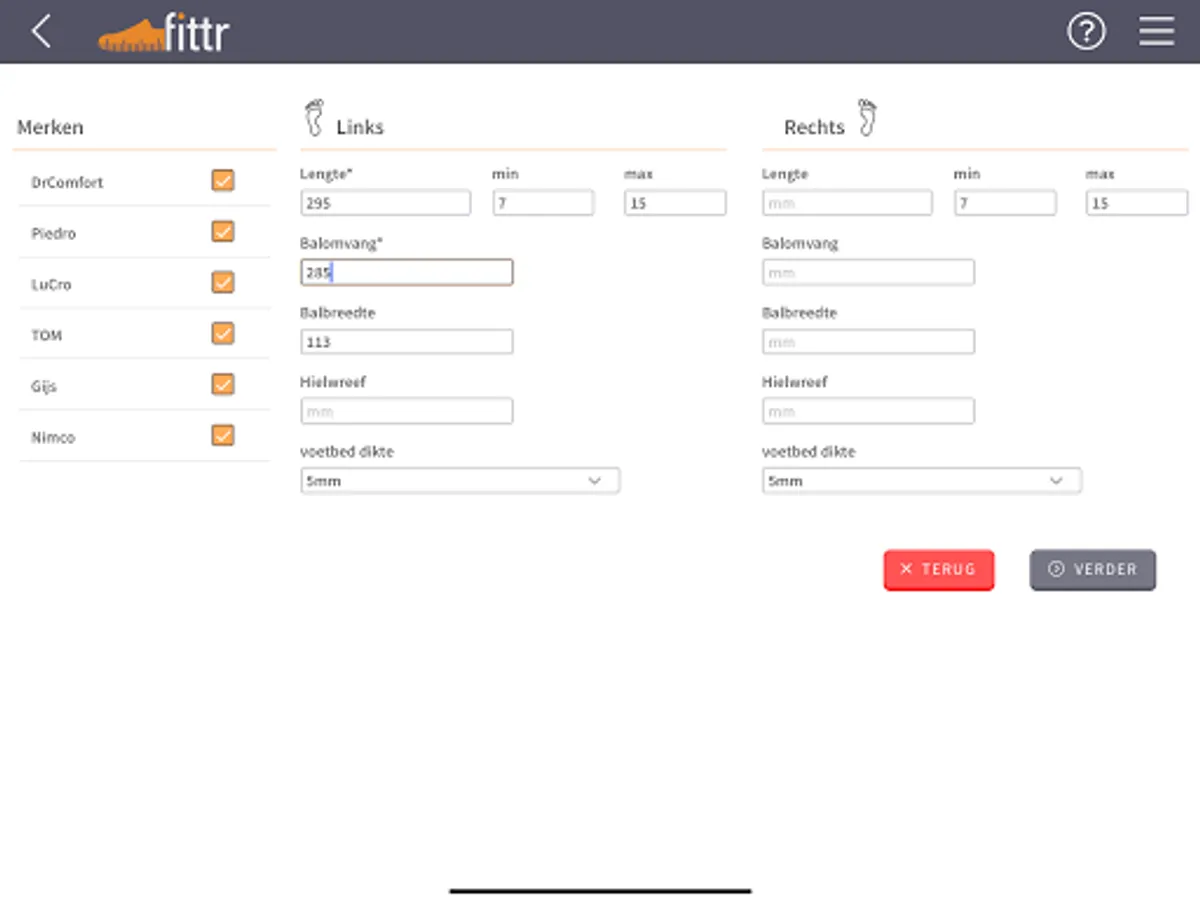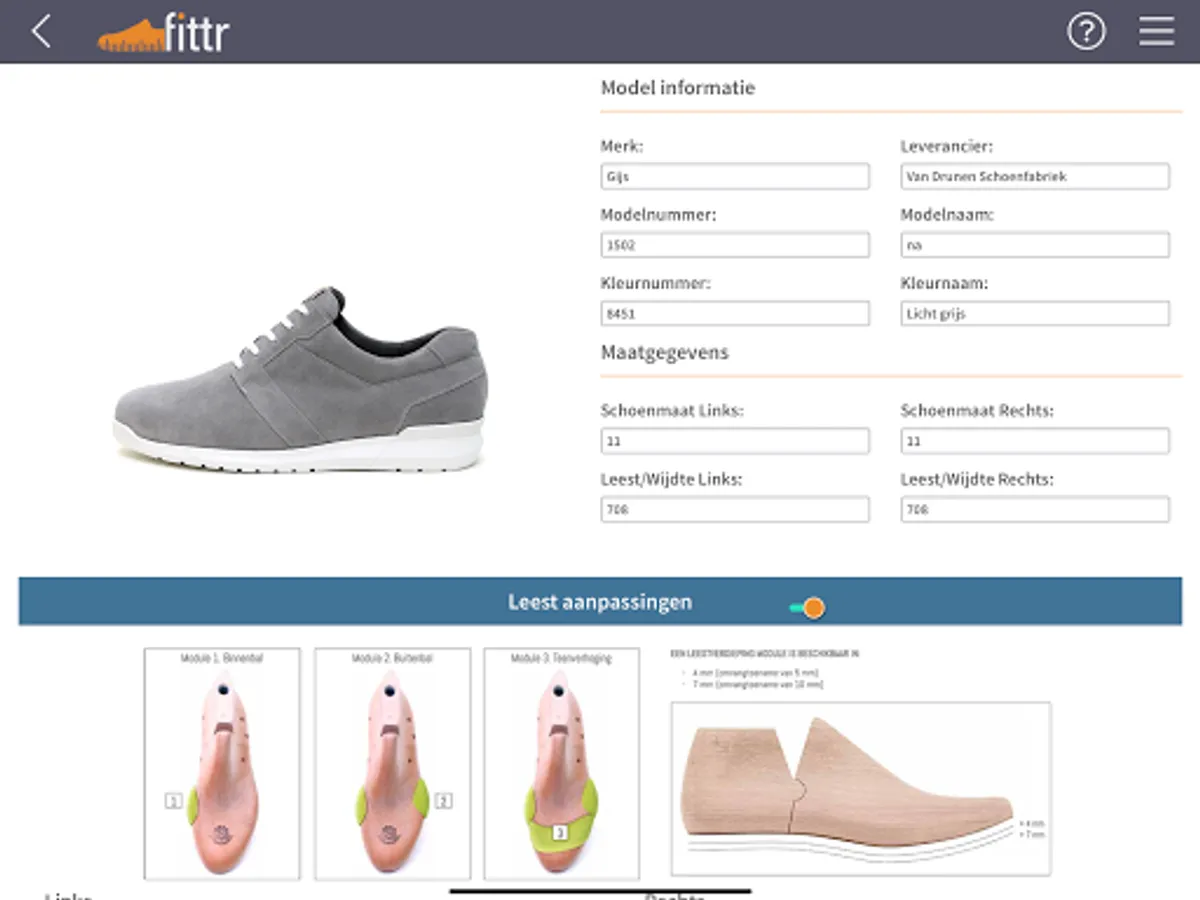 fittr is an application to quickly, easily and transparently with your customers to the choice of semi-orthopedic shoes to come.