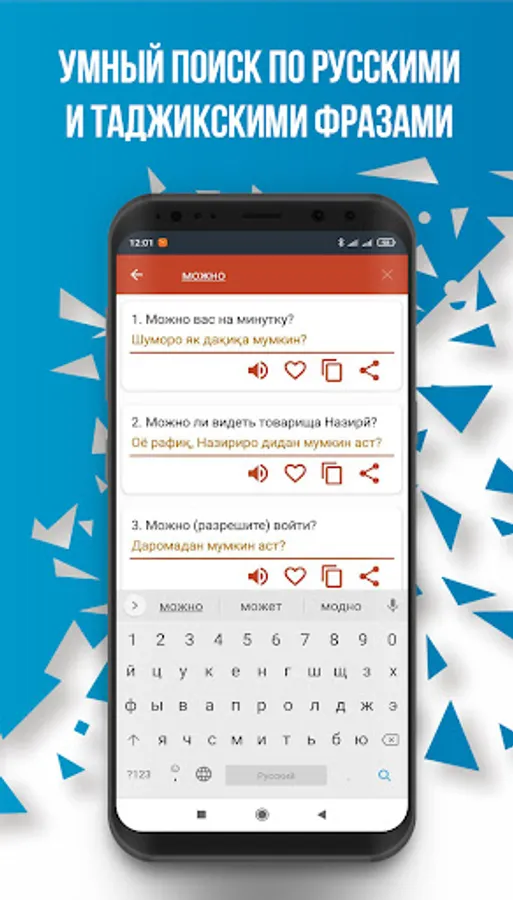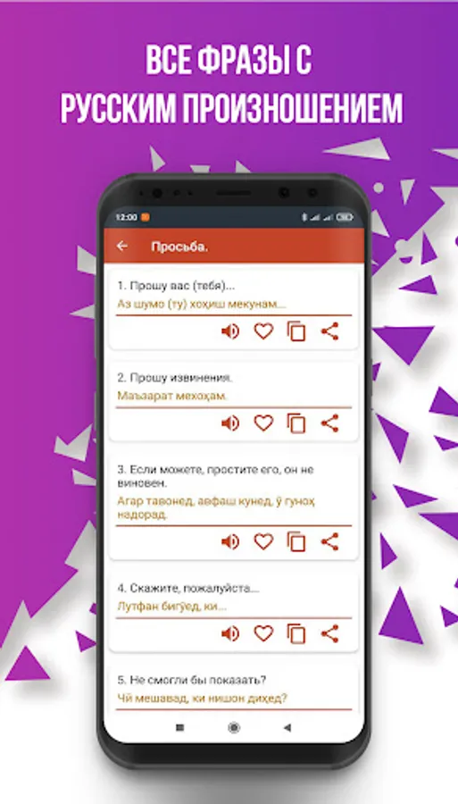 🇬🇧🇹🇯 Russian-Tajik phrasebook contains all the necessary words and phrases that you may need during your work trip or travel. This application contains more than 5330 phrases sorted and grouped by topic with images. The most important thing in the application is the pronunciation of the phrase in Russian, this feature allows you to learn Russian with the correct pronunciation. We have done everything to make mastering and learning new phrases the most convenient!