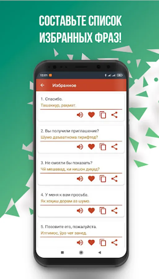 👉 Use the search function to quickly find the phrase you need in two languages at once. Add your most frequently used phrases to your favorites list. You do not need an internet connection to use this application. Therefore, you can use the application and learn the language anywhere!