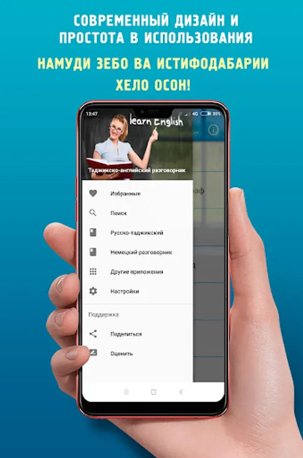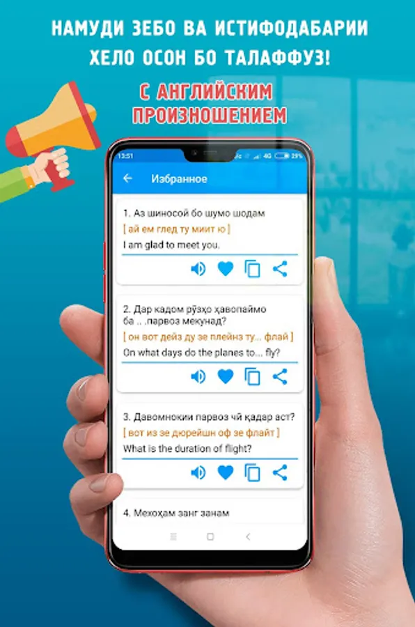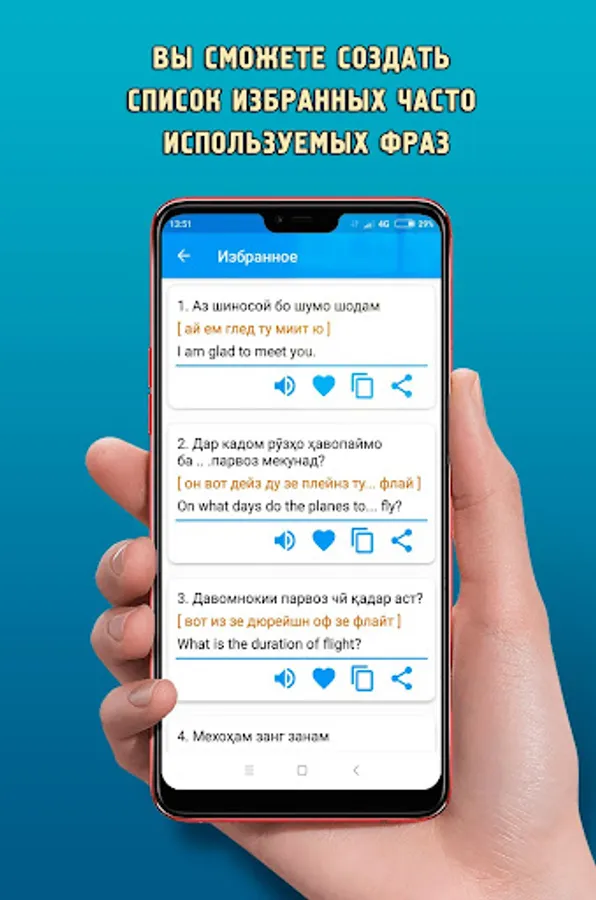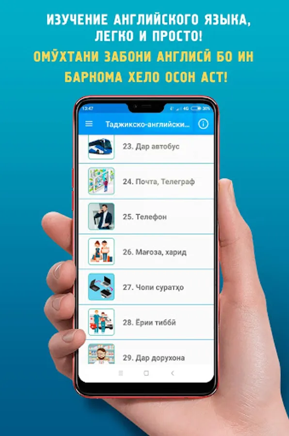 The Tajik-English phrasebook contains all the necessary words and phrases with pronunciations that you may need during your trip or trip. This application contains more than 1100 phrases , which are sorted and grouped by topic with images. We have done everything to make learning and learning new phrases the most convenient!