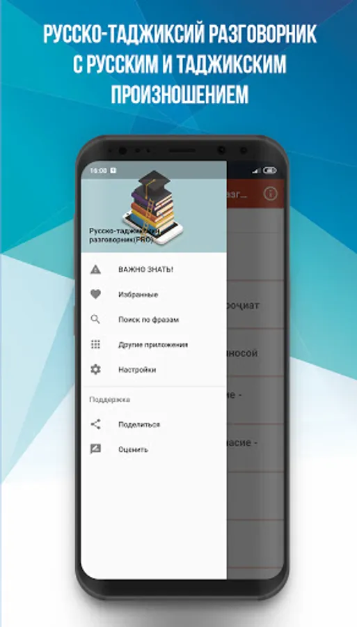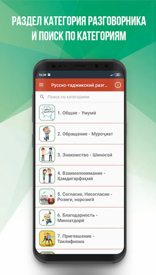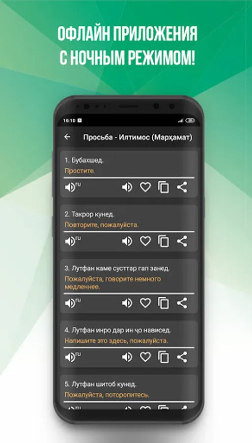 🏆 Phrasebook is an excellent assistant for those who know Russian / Tajik, and an indispensable companion for everyone who is just starting to learn the language. The phrasebook works completely without an internet connection.