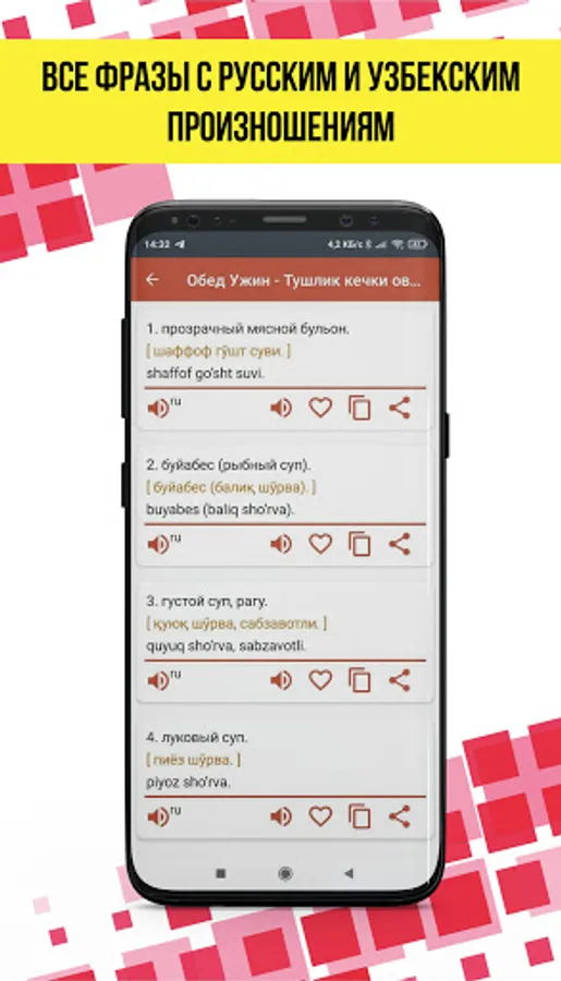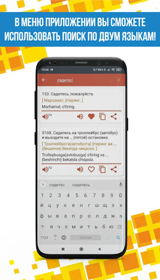 👉 If you have a tablet or smartphone with you, then any trip will become comfortable, even if you are not an expert in Uzbek or Russian. With the new phrasebook, understanding the interlocutor and correctly expressing your thought is as easy as shelling pears.