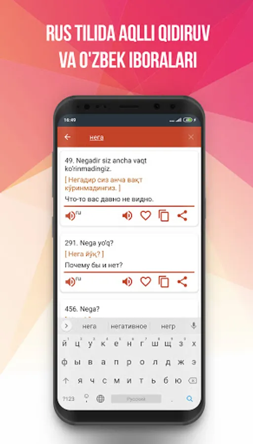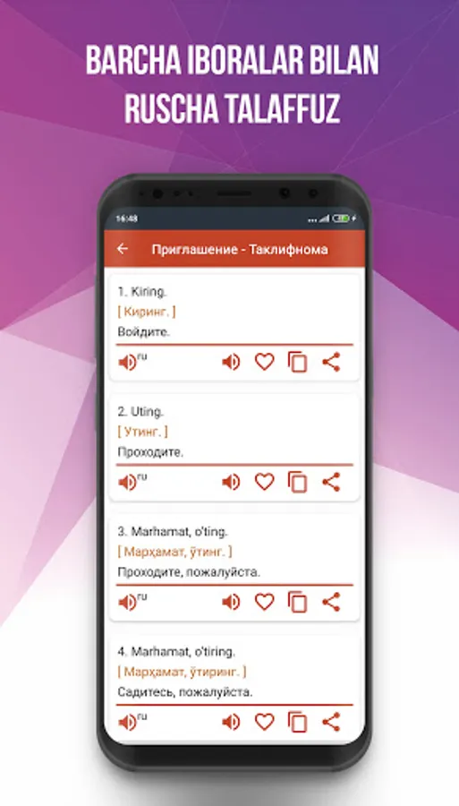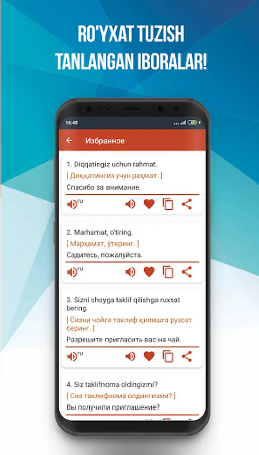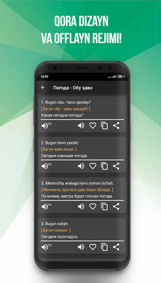 ❤️Sӯzlashgich tilni ӯrganish va yakhshilashga yordam beradi: tezkor kirish va talafuz қilish uchun iboralarni "sevimlilar" bӯlimida saқlash mumkin.