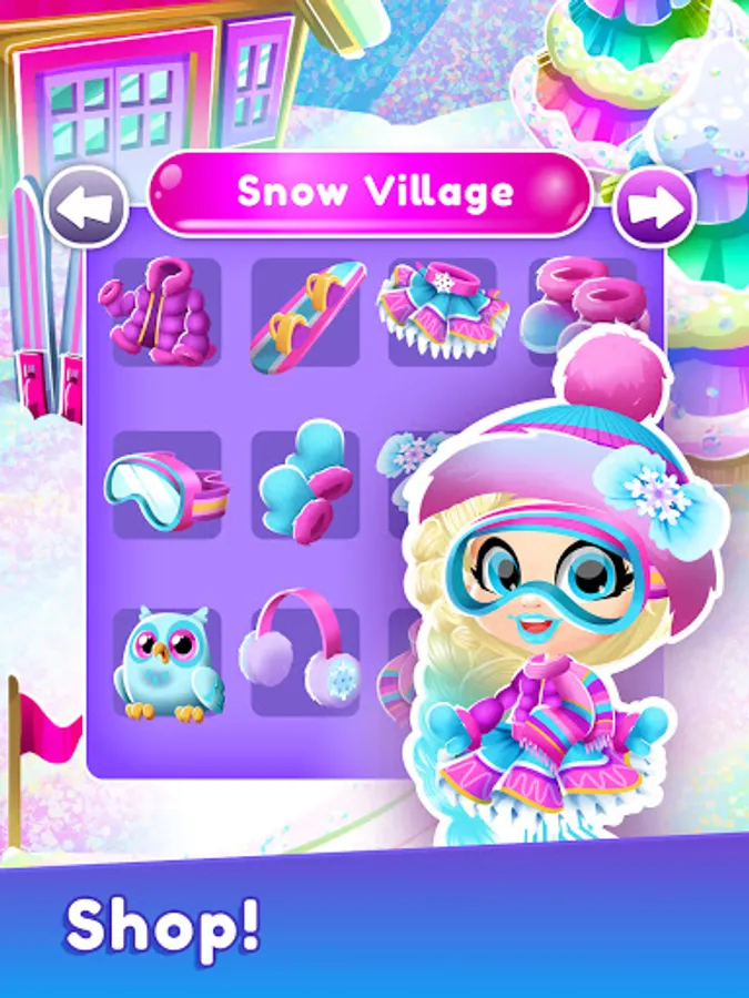 Travel through Shopping Street, Candy World, Snow Village, Princess Paradise and more to shop for the best, most stylish and beautiful outfits, accessories, shoes, make up.... and so much more.