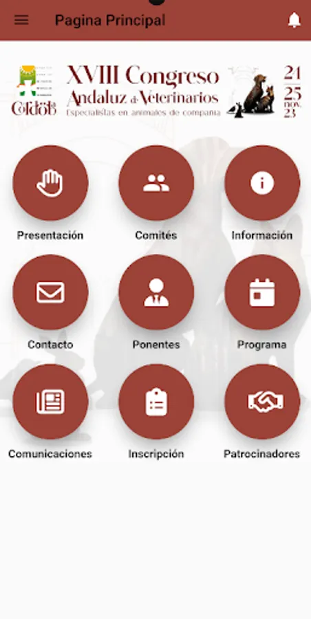 Informative application of the Andalusian Congress of Veterinarians 2023 specialized in companion animals, organized by the Andalusian Council of Official Veterinary Colleges and which will take place at CEFC in Córdoba on November 24 and 5, 2023.