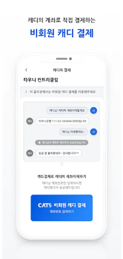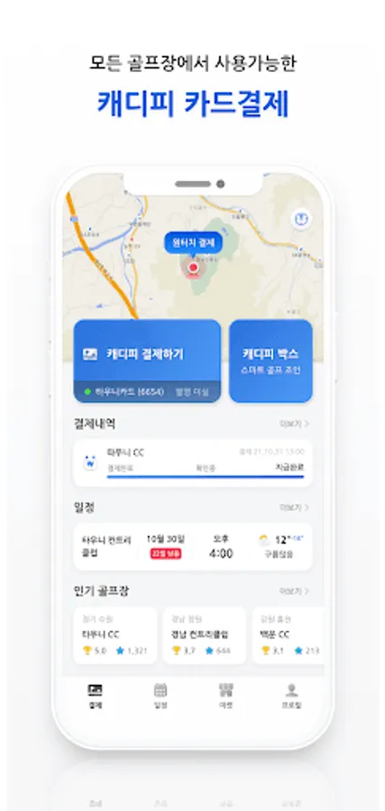 You can easily pay for Caddy P payment, which has been made only in cash, with just one card registration at Caddy Bank. Caddy Bank will help you forget all the troublesome things such as ATM withdrawals and issuance of simple receipts so you can focus on your rounds.