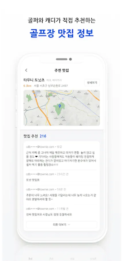 Now manage your important golf appointments with Caddy Bank. If you register your rounding schedule in Caddy Bank, you can easily check when, where, and with whom you have a golf appointment. You can see the golf course weather forecast, as well as honest reviews and blog reviews of other golfers who have visited the golf course, and restaurant information recommended by the caddy at a glance.