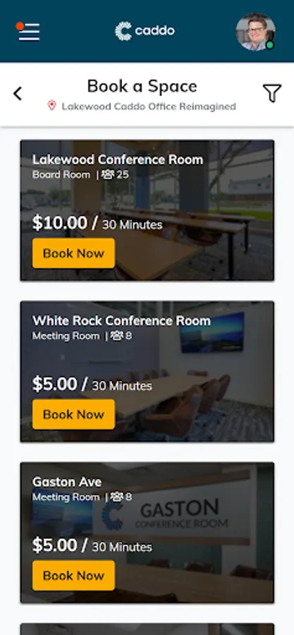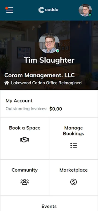 The Caddo app is a members-only app for Caddo Office Reimagined. Members can use this app to book conference rooms, manage their bookings, review invoices, and pay rent.