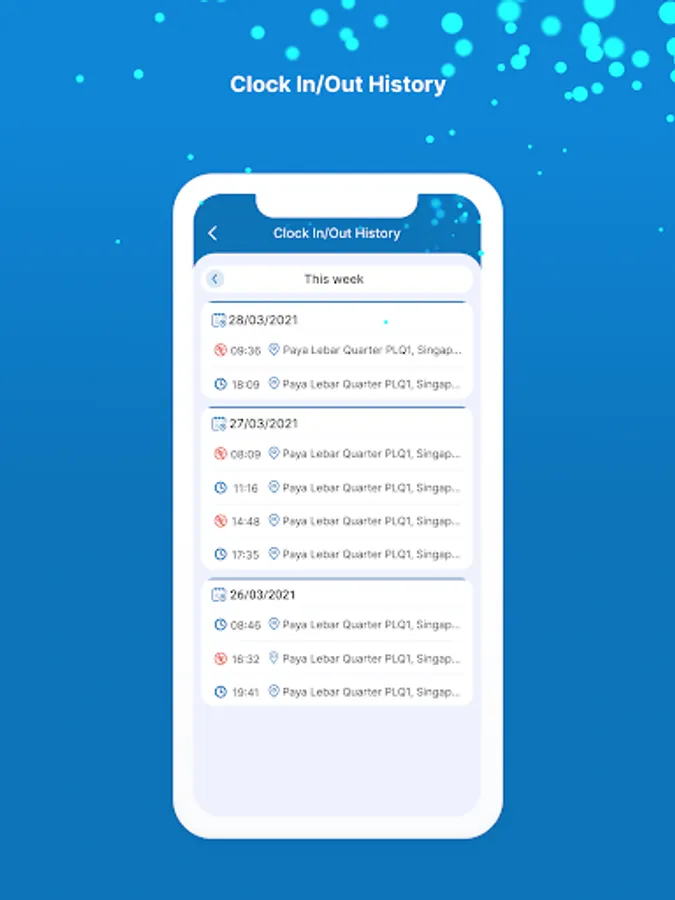 - Clock your attendance based on GPS location