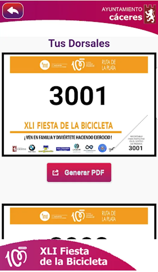 With this application you can register for the Bicycle Festival that will take place on October 13 in Cáceres, and request the numbers you need, which you can then download and print. You can also know the route and the stops, which are mapped on Google Maps. Cheer up, take pictures during the event and participate in the contest organized by Cadena 100. And don't forget to take a look at the tips, for your safety and well-being.