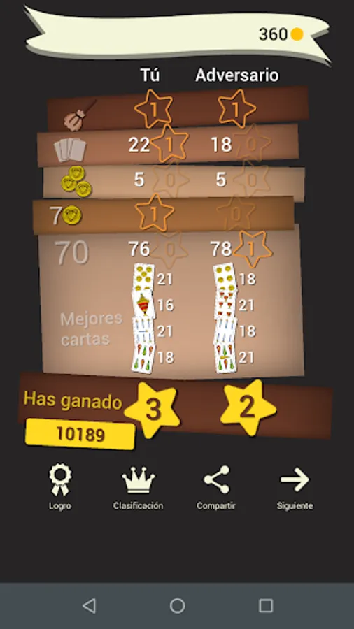 - A point for the one with the highest number in the Seventies. To calculate the points obtained by the Seventy it is necessary to find the highest score card that has been raised from each suit. Each of them add points as follows: