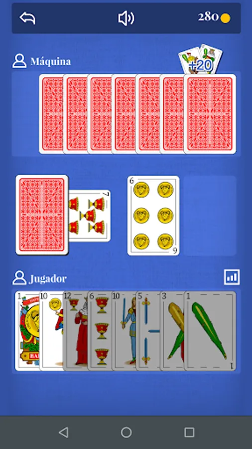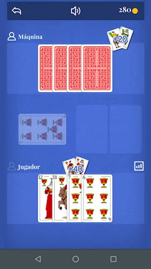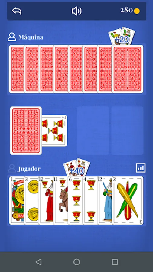 - In between, a series of chants can be made. Chants occur when a player holds the king and the horse of the same suit. You can sing the forty if you have these two triumph stick figures in your hand and you earn 40 points; and the twenty will be sung when you have the figures of another suit that is not the trump suit, in this case 20 points are obtained.