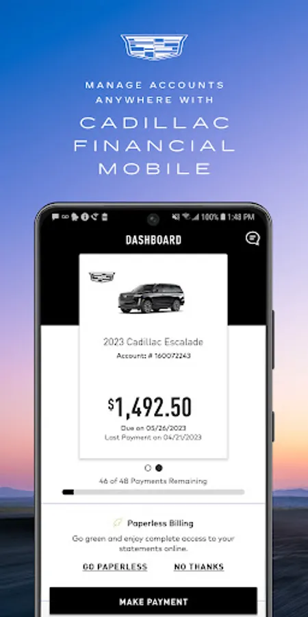 The Cadillac Financial Mobile app lets you manage your account anywhere. Wherever your journey takes you, you have the tools you need to make payments, update information and keep your Cadillac Financial account on track.