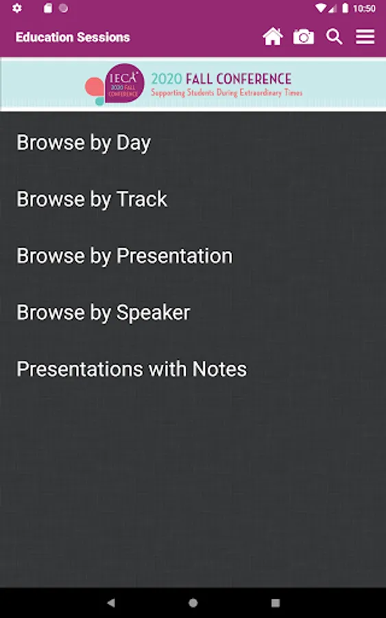 The IECA Conference mobile application allows you to browse through presentations, presenter, and exhibitor details, as well as other resources from select IECA events.