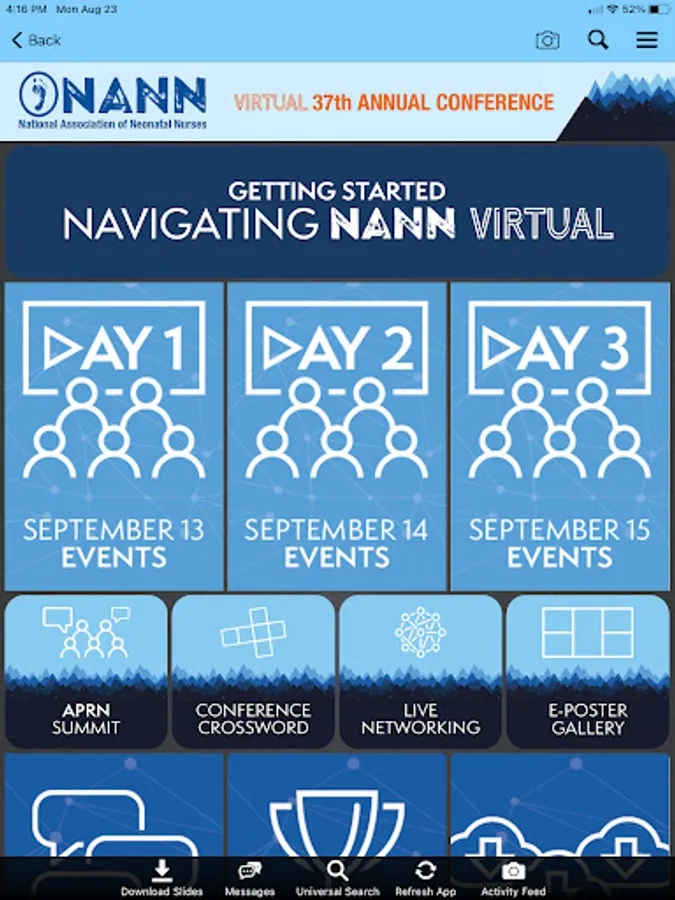 This mobile application allows you to view abstracts, presentations, speakers, and exhibitors from the NANN Annual Conference event. Users can take notes adjacent available presentation slides and draw directly on slides inside the app. Note-taking is also available in the exhibitor module.