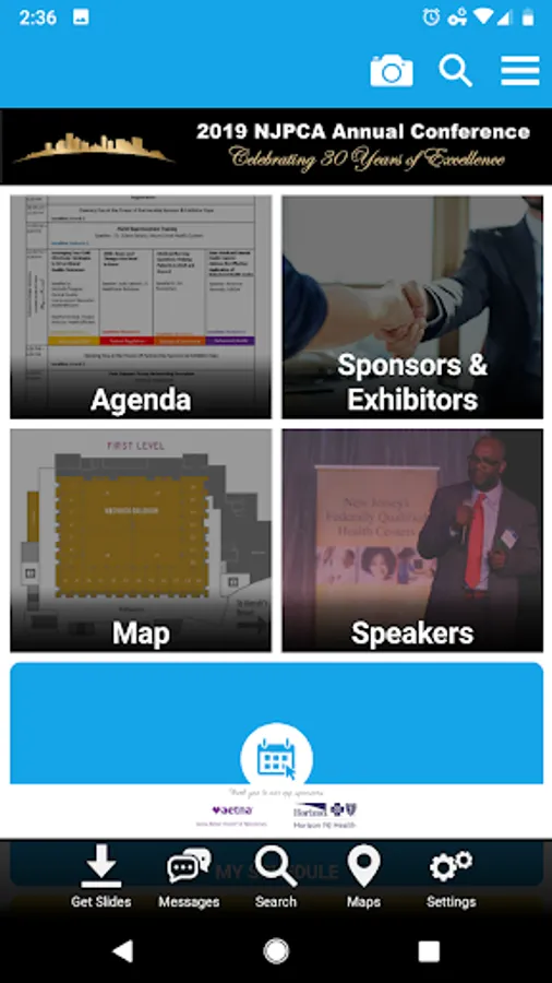 The NJPCA mobile application allows you to access this organization's various annual conferences. Within the underlying event apps, users an access presentations, exhibitor data, posters, and connect with other attendees. Users can also take notes in adjacent available presentation slides and draw directly on slides inside the event apps.
