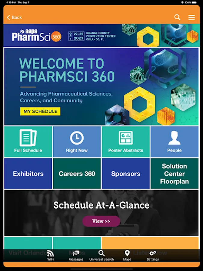 The AAPS PharmSci 360 mobile application allows you to access AAPS PharmSci 360's annual conferences. Within the underlying event apps, users can access presentations, exhibitors, and connect with other attendees. Users can also take notes adjacent available presentation slides and draw directly on slides inside the event apps.