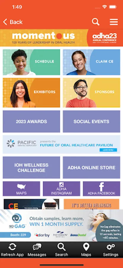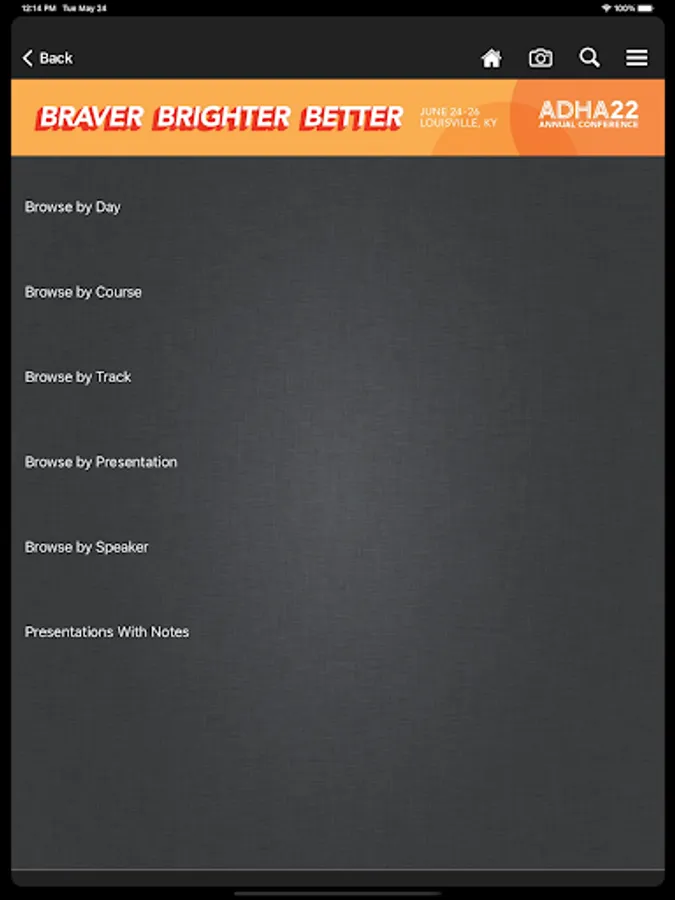 The ADHA Events app provides conference apps that allow you to view the schedule, presentations, exhibitors and speaker details from the conferences. Users can take notes adjacent available presentation slides and draw directly on slides inside the app. Note-taking is also available in the posters and exhibitors modules.