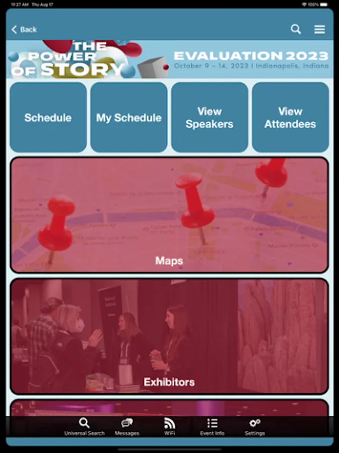 The AEA Events mobile application allows you to view the schedule, presentations, exhibitors, and speaker details from the conference. Users can take notes adjacent to the presentation slides real time during presentations and draw and highly directly on the slides inside the app. Note-taking is also available in the posters and exhibitors pages as well. Additionally, users can share information with attendees and colleagues with the in app messaging feature, tweeting, and emailing.