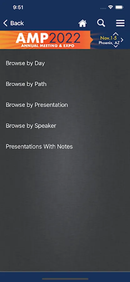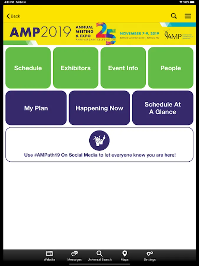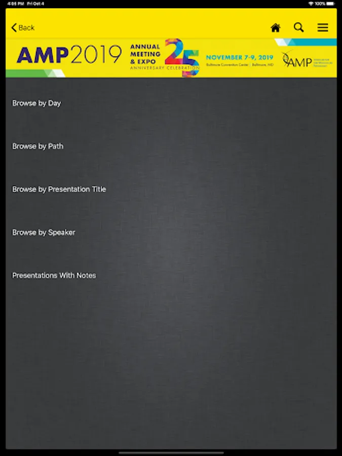 The AMP Meetings mobile application allows you to access AMP various meetings. Within the underlying event apps, users can access presentations, exhibitors, and connect with other attendees. Users can also take notes adjacent available presentation slides and draw directly on slides inside the event apps.