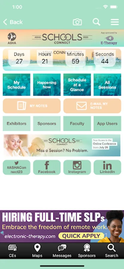 The ASHA Connect mobile application allows you to view the schedule, poster abstracts, exhibitors and speaker details from the annual conference. Users can take notes adjacent available presentation slides and draw directly on slides inside the app. Note-taking is also available in the Exhibitors module.
