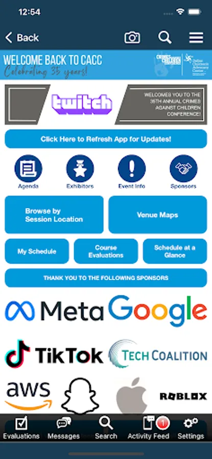 The DCAC Events mobile application allows you to access DCAC's various conferences. Within the underlying event apps, users can access presentations, exhibitors, and connect with other attendees. Users can also take notes adjacent available presentation slides and draw directly on slides inside the event apps.