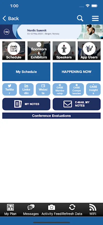 The CASE Conference App mobile application allows you to access CASE's various annual conferences. Within the underlying event apps, users can access presentations, exhibitors, and connect with other attendees. Users can also take notes adjacent available presentation slides and draw directly on slides inside the event apps.