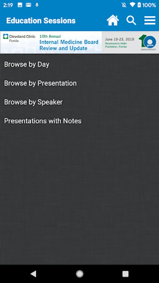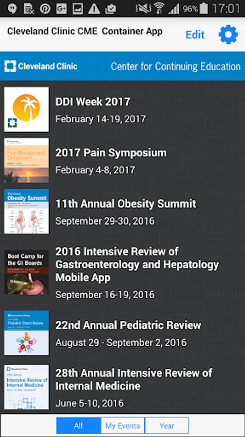 The Cleveland Clinic CME mobile application allows you to browse through presentation, speaker and exhibitor information from select Cleveland Clinic CME events.