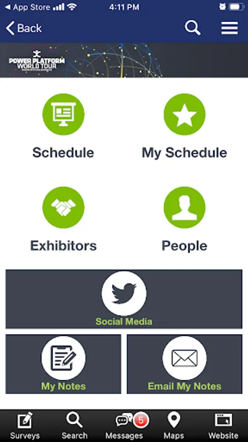 Additionally, users can share information with attendees and colleagues with in app messaging, tweeting and emailing.