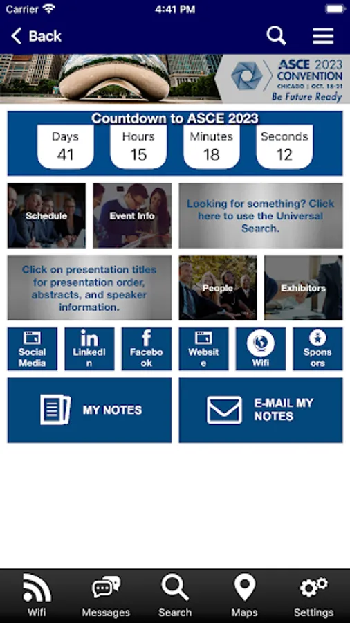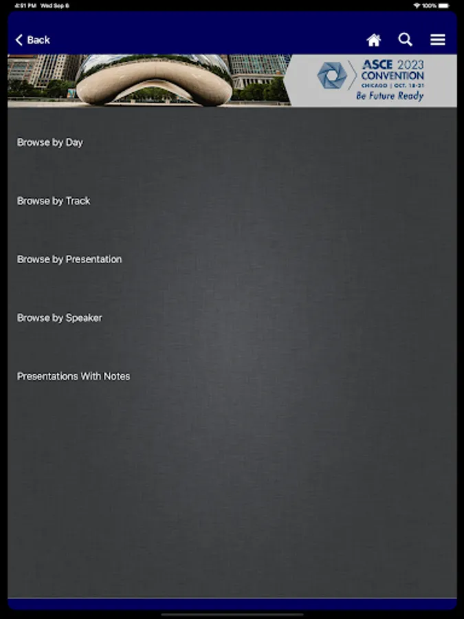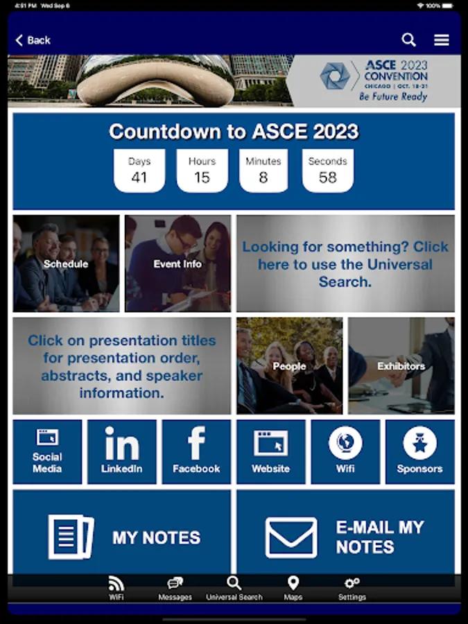 The ASCE Conferences and Events mobile application allows you to access the American Society of Civil Engineer's various conferences. Within the underlying event apps, users can access presentations, exhibitors, posters, and connect with other attendees. Users can also take notes adjacent available presentation slides and draw directly on slides inside the event apps.