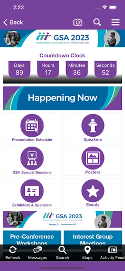 The GSA Events mobile application allows you to access various Gerontological Society of America events. Within the underlying event apps, users can access presentations, exhibitors, and connect with other attendees. Users can also take notes adjacent available presentation slides and draw directly on slides inside the event apps.