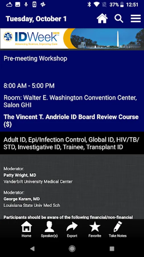 The IDWeek mobile application allows you to access the presentations from live IDSA events and access all the available presentation slides. You can draw and highlight directly on the slides using your finger, and you can take notes adjacent each slide. All your notes are saved online for you so you can access them later through your online personal summary.