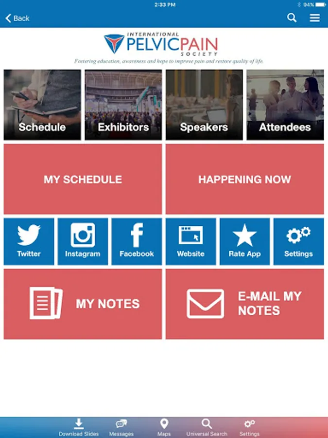 The IPPS Annual Meeting mobile application allows you to access various IPPS conference details. Within the underlying event apps, users can access presentations, exhibitors, and connect with other attendees. Users can also take notes adjacent available presentation slides and draw directly on slides inside the event apps.