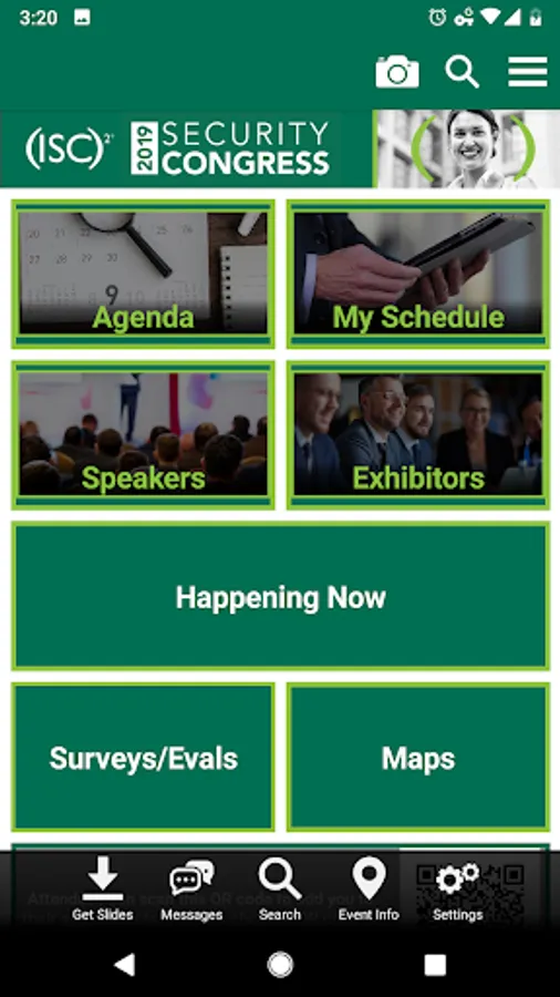 The (ISC)2 Security Congress mobile application allows you to view abstracts, presentations, speakers, and exhibitors from the annual Security Congress event. Users can take notes adjacent available presentation slides and draw directly on slides inside the app. Note-taking is also available in the exhibitor module.