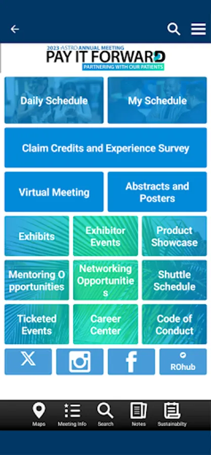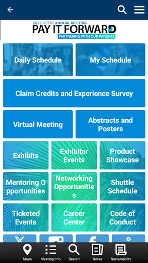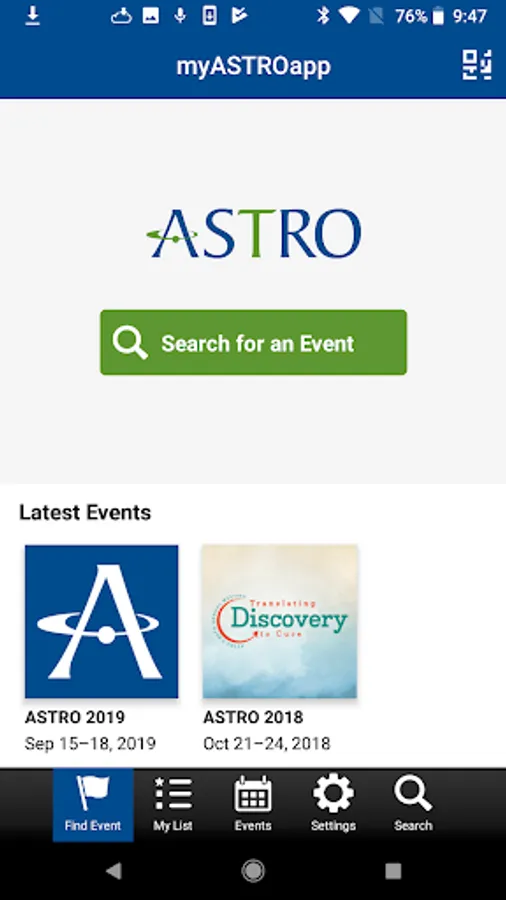 The MyASTROApp mobile application allows you to access each ASTRO annual conference details. Within the underlying event apps, users can access presentations, and exhibitors, and connect with other attendees. Users can also take notes adjacent to available presentation slides and draw directly on slides inside the event apps.