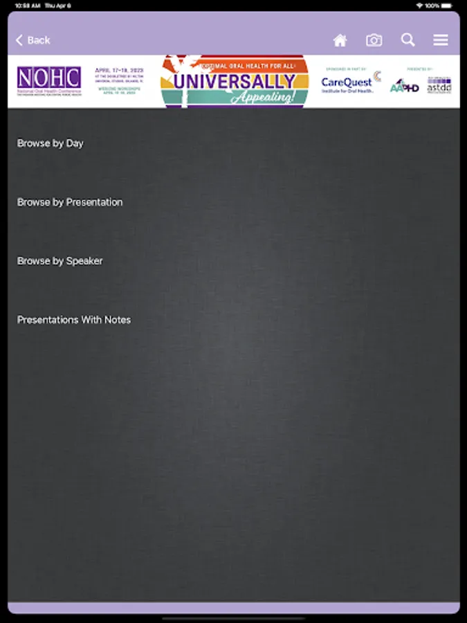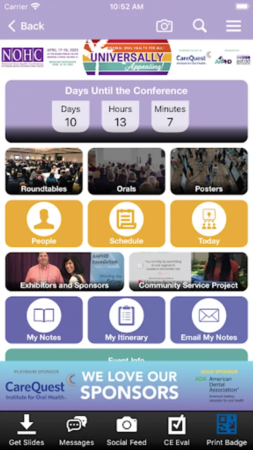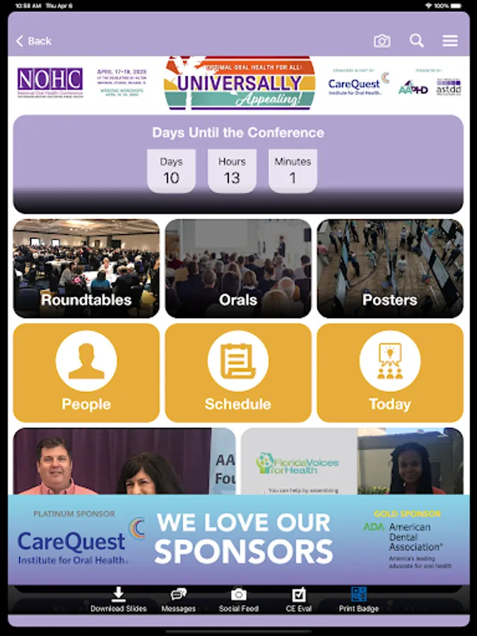 The NOHC Annual Conferences mobile application allows you to view the schedule, presentations, posters, exhibitors, and speaker details from the conference. Users can take notes adjacent available presentation slides and draw directly on slides inside the app. Note-taking is also available in the posters and exhibitors modules.