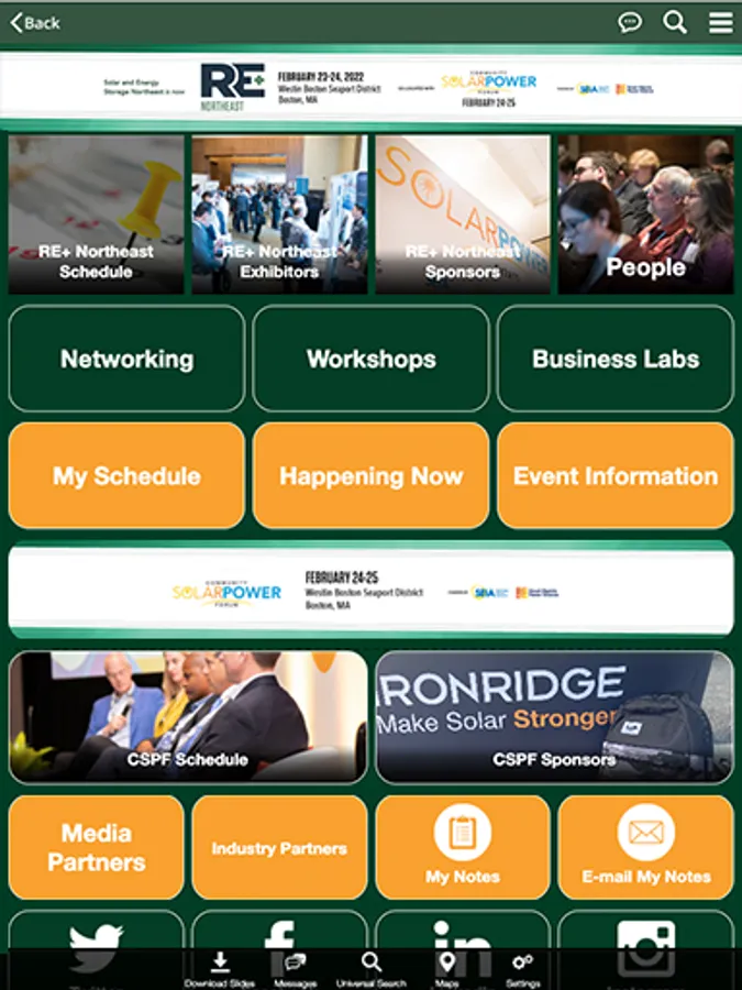 App users can share information with attendees and colleagues with in app messaging, tweeting and emailing. You can also browse event speakers and view all attendees. This is a great way to expand your network in the solar industry.