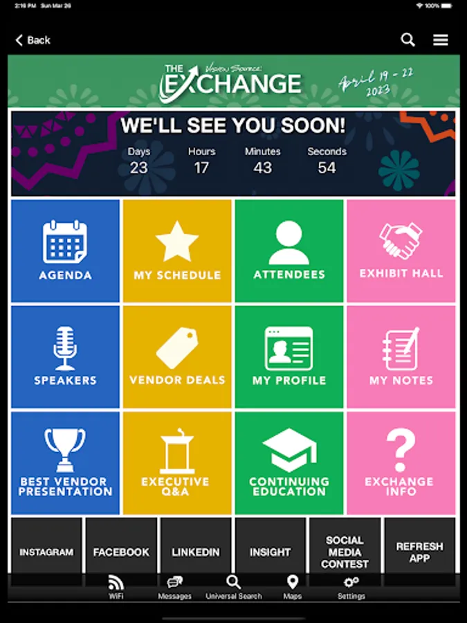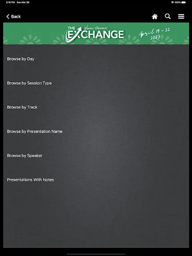 The VS Exchange application allows you to access each VS Exchange conference details. Within the underlying event apps, users can access presentations, exhibitors, and connect with other attendees. Users can also take notes adjacent available presentation slides and draw directly on slides inside the event apps.