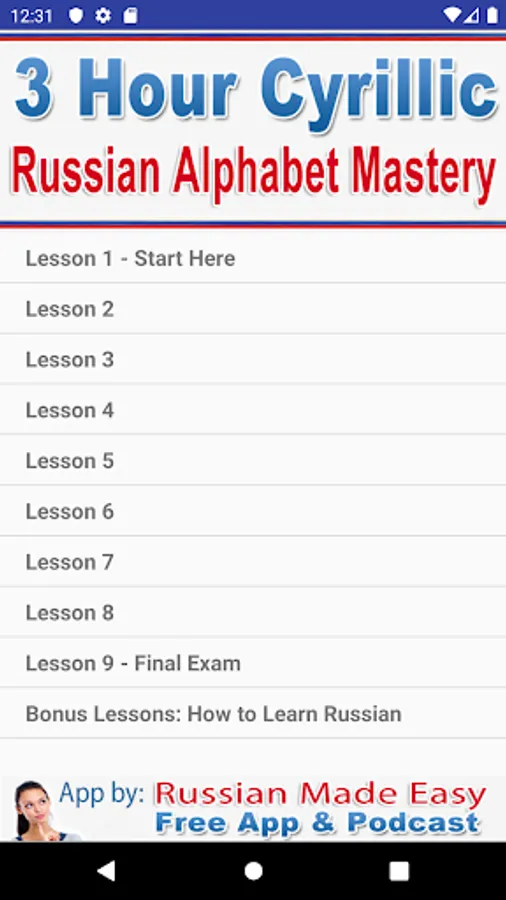Russian Alphabet Mastery 2.0 is normally available as part of the paid RussianAccelerator.com online program, but is now available free to app users.