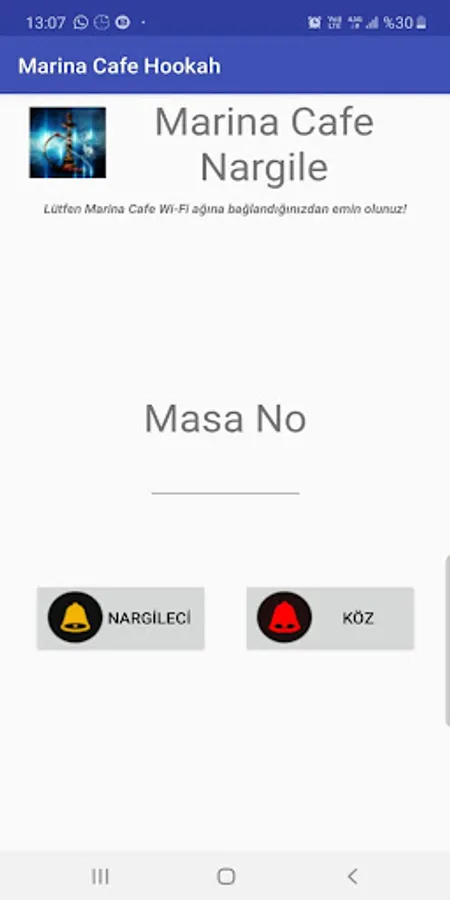 Kocaeli Sekapark Marina Cafe Hookah Application;