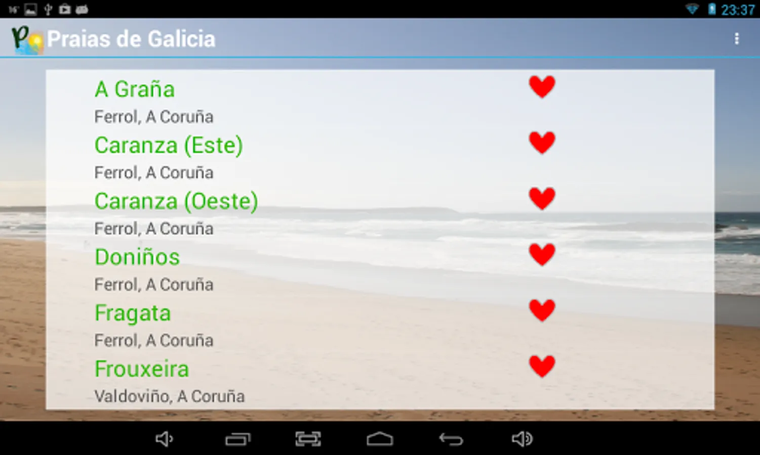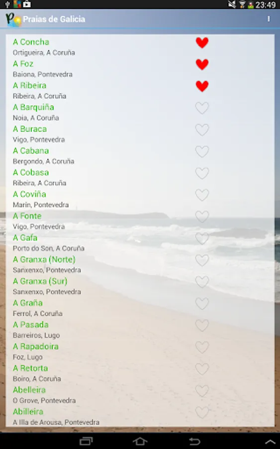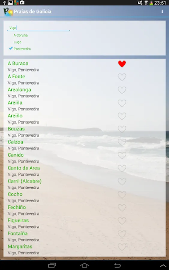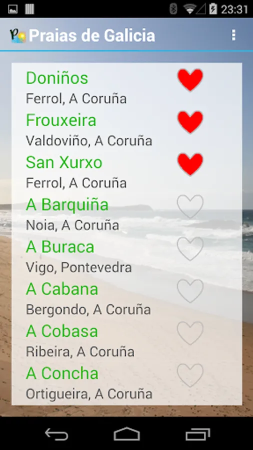 -Allows you to mark as favorites for atopalas praias máis doadamente.
