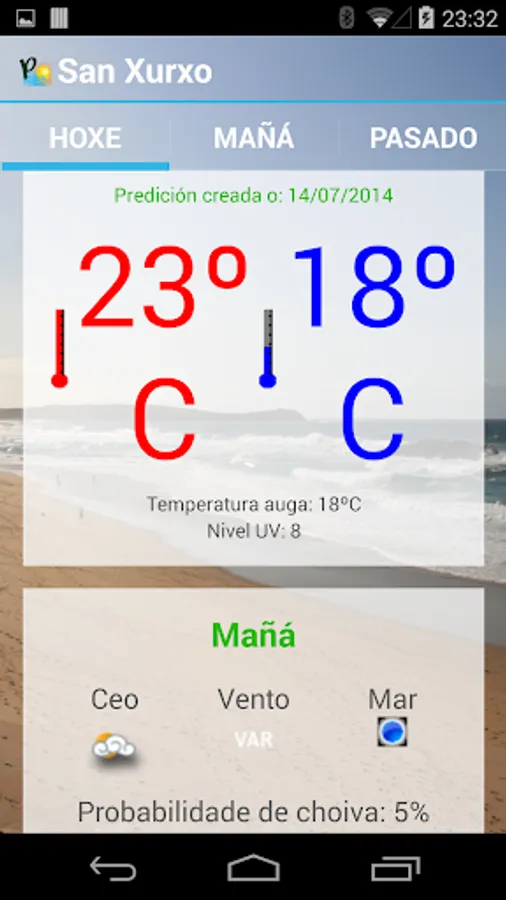 Wear-Compatibilidade Android (beta): no teu di Reloxo support Android or nome da praia Wear and instantly get a praia predición for that.