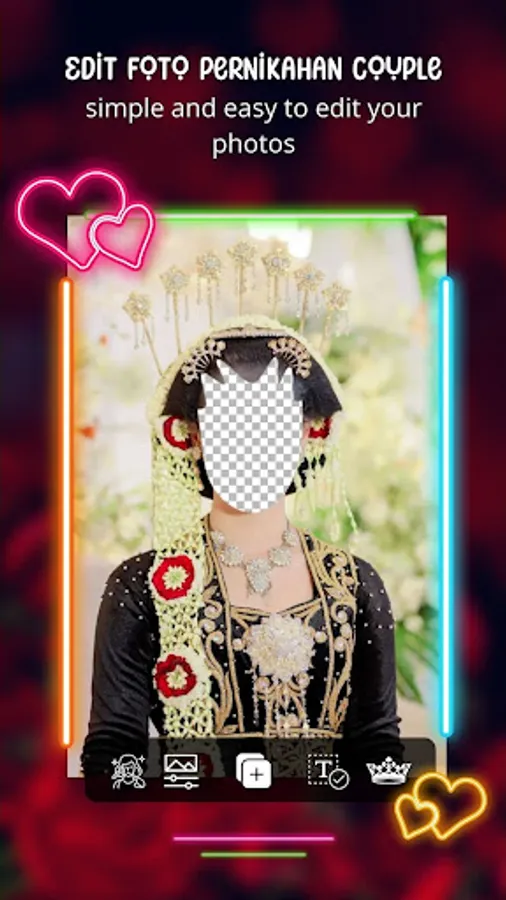 The Couple Wedding Photo Editing application is suitable for couples who are planning a wedding. With this app, they can easily create attractive wedding invitations and photo edits. Apart from that, this application can also help them in choosing the appropriate wedding dress, such as a modern bridal kebaya or syari dress. Users can also use this application to make pre-wedding photo edits or beautify photos on the wedding night.