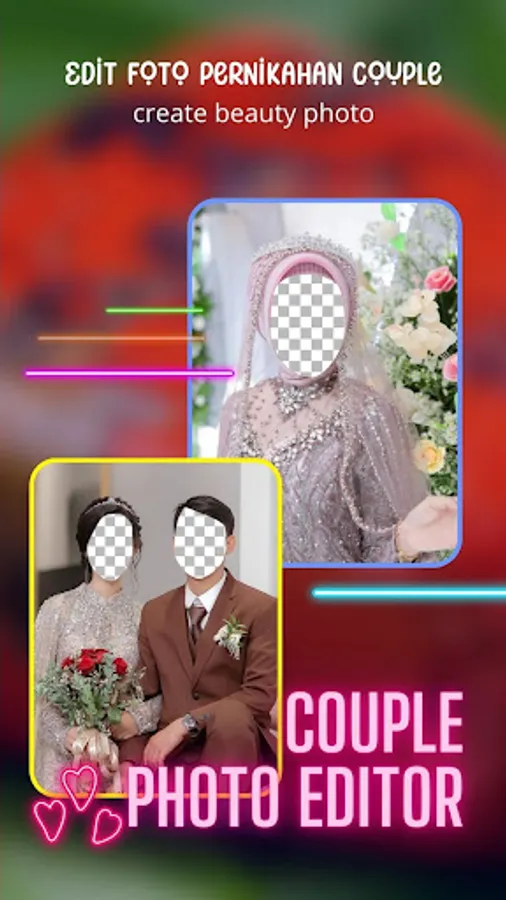 Couple Wedding Photo Editing is a photo editing application specifically designed to make it easier for users to edit photos for couples who are dating or getting married. This application offers a variety of interesting features to produce beautiful and elegant wedding photo edits.