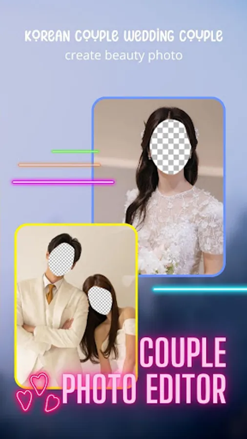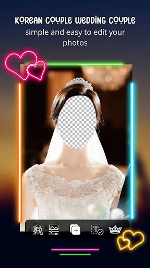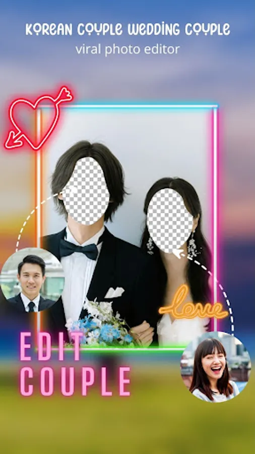 Korean Couple Wedding Couple is a photo editor application specially designed for couples who want to capture their happy moments. This application provides various features to edit photos of your partner and make them look more beautiful and impressive.